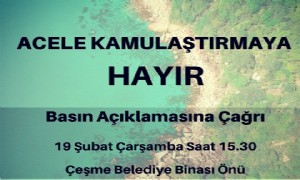| Çeşme Turizm Geliştirme Alanı için Cumhurbaşkanlığı kararnamesi ile gerçekleştirilen kamulaştırma çalışmaları için İzmir Kent Konseyleri Birliği Çarşamba günü saat 15.30’da Çeşme ... |