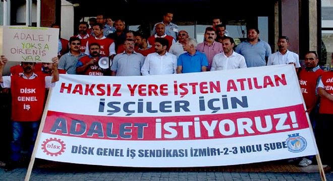 İzmir Büyükşehir Belediyesi'nden kadro ve ilave tediye davası açtıkları için işten atılan üyeleri ile ilgili açıklama yapan Genel İş İzmir Şubeleri, hakkını arayan işçilerin işten atılmasının adalet arayışına zarar verdiğini beklerek adalet taleplerini dile getirdi.