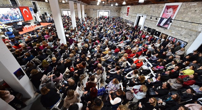 Programın açılış konuşmasını yapan İzmir Büyükşehir Belediye Başkanı Aziz Kocaoğlu, İzmir'in pek çok kentten göç almasına rağmen bu kentte yaşayanların kendilerini İzmirli hissettiklerini vurgulayarak, "İzmir'i İzmir yapan zenginlik ne? Bunu hiç düşündünüz mü? İzmir kentinin tarihten gelen bir yaşam biçimi var. Türkiye'nin her tarafından göç alan diğer metropol illerimize baktığımızda yerleşenlerin dayattığı kültür ile mücadele edemediğini görürüz. Kentliliklerini koruyamadılar. Örneğin Adana, Mersin, Antalya, İstanbul. Peki, İzmir neden bu kente gelip yerleşenlere en fazla 3 yıl içinde 'ben İzmirliyim' dedirtebiliyor? Bunun sırrı nerede? Bu sır hayatın içerisinde. İşte, sosyal yaşantıda, kültürde, sanatta, her yerde aktif olan siz kadınlarımızda. Kadınlarımız sokağa çıktığı m üddetçe, kadınlarımız sosyal olaylara, ekonomiye müdahale ettiği müddetçe, ürettiği müddetçe, bu ülkenin sırtı yere gelmeyecektir" diye konuştu.