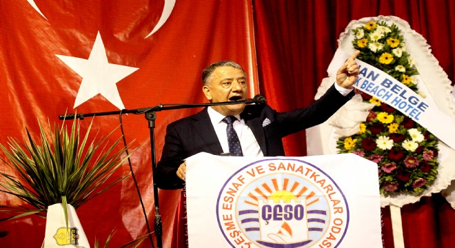 Çakabey Kültür Merkezi’nde gerçekleştirilen ve tek liste olarak güven tazeleyen Çeşme Esnaf Odası Başkanı Osman Köfüncü, yaptığı açıklamada Çeşme Turistik Otelciler Birliği Başkanı Yakup Denir’in yaptığı açıklamalar üzerine, “Kendisi esnaftan yana değil, zincir marketçiymiş. Sen bu esnafı öp başına koy! Esnafımın karşısında olan ÇEŞTOB başkanı derhal istifa etmelidir. Ayrıca Alaçatı Turizm Derneği Başkanına da burada bir uyarıda bulunmak istiyorum. Eğer esnafımın önünde stant açacaksan önce bize bir danış. Ben burada esnafımı yaşatmaya çalışırken bir darbe de sizler vurmayın” dedi.
