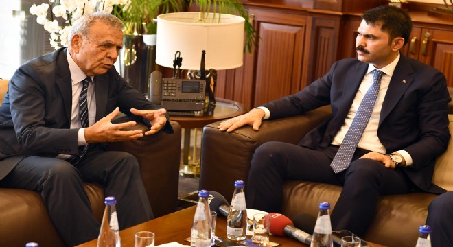 Çevre ve Şehircilik Bakanı Murat Kurum, İzmir Büyükşehir Belediye Başkanı Aziz Kocaoğlu'nu makamında ziyaret etti. İzmir’in sorunlarının masaya yatırıldığı toplantıda İzmir Valisi Erol Ayyıldız, Bakan Yardımcıları Mehmet Emin Birpınar ve Fatma Varank, İzmir AKP İl Başkanı Aydın Şengül, AKP İzmir Milletvekili Ceyda Çankırı Bölünmez ve Büyükşehir Belediyesi bürokratları da hazır bulundu.
