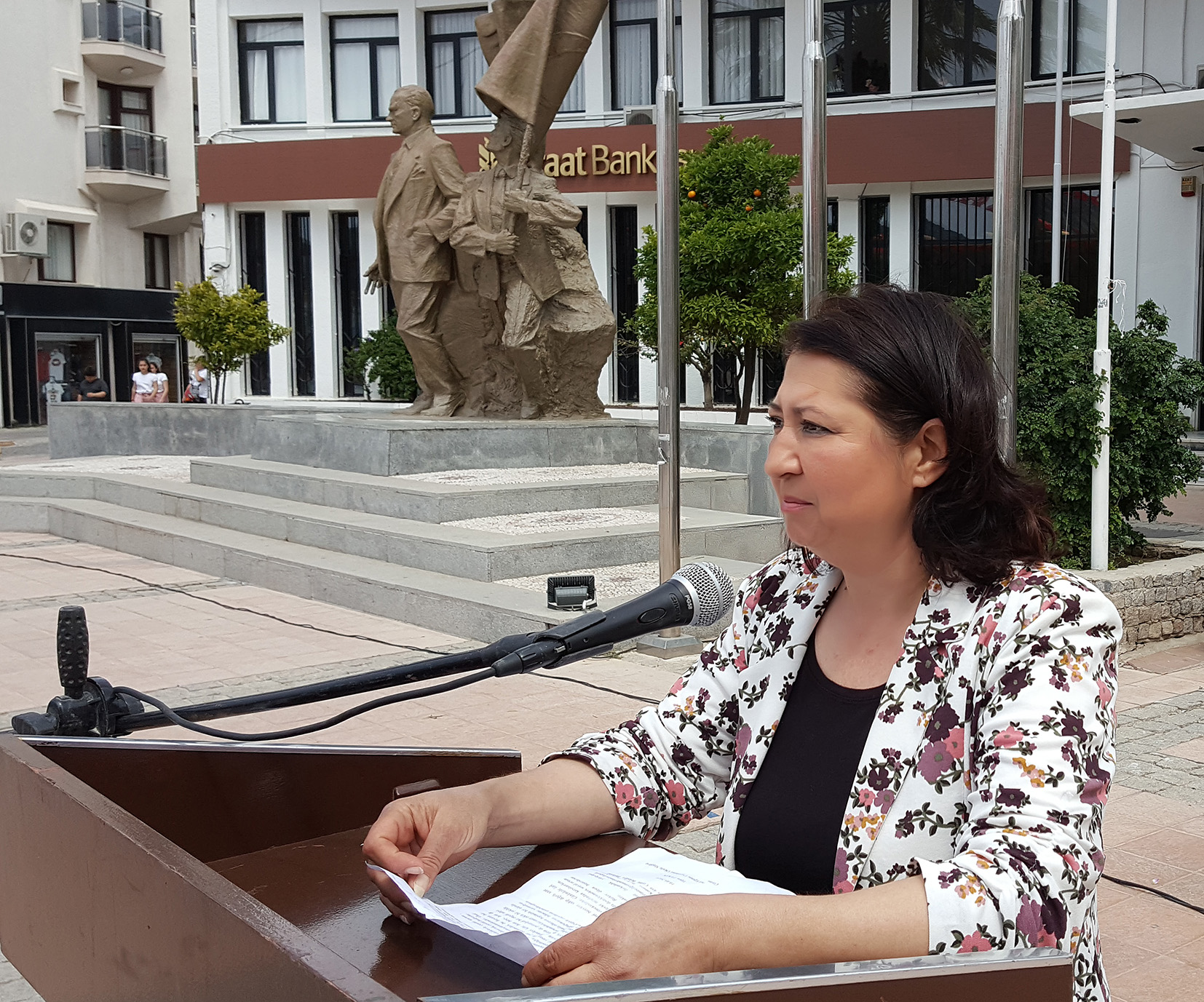 Etkinlik, Çeşme Özel Eğitim Uygulama Okulu'nda eğitim gören Duygu Kulaksız'ın okuduğu şiirin ardından sona erdi.