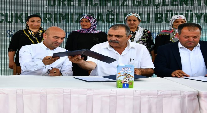 Konuşmaların ardından İzmir Büyükşehir Belediye Başkanı Tunç Soyer, Tire Süt Kooperatifi Yönetim Kurulu Başkanı Mahmut Eskiyörük, İzmir Tarımsal Kalkınma ve Diğer Tarımsal Amaçlı Kooperatifler Birliği Müdürü Yasemin Güngör Engin, Yukarıcuma Tarımsal Kalkınma Kooperatifi Başkanı Reşat Çakmak, Aşağıcuma Tarımsal Kalkınma Kooperatifi Başkanı Ömer Karakaya, Hisarköy Tarımsal Kalkınma Kooperatifi Başkanı Mehmet Ali Çakır süt alım sözleşmesini imzaladı.