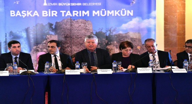 Tarım, üretim ve gıda meselesi, sadece ekonomik yönüyle deg^il; toplumsal, ekolojik, tarihsel, ku¨ltu¨rel ve siyasal boyutlarıyla bir bütün olarak deg^erlendirilecek geniş bir mesele diyen İzmir Büyükşehir Belediyesi Başkan Vekili Mustafa Özuslu açılış konuşmasında şunları kaydetti: “İzmir Büyükşehir Belediyesi olarak tüm ülkeye örnek olduğumuz kırsal kalkınma stratejimizle, küresel sistemin ülkemizde yarattığı bu olumsuz sonuçlara karşı “başka bir tarım mümkün” ifadesiyle yola çıktık. Doğayı iyi okuyarak özüne dönen, üreticiyi toprakla buluşturan ve üretenin alnının terinin karşılığını alabildiği kapsamlı bir tarım stratejisi geliştirdik. Karakılçık buğdayı gibi ata yadigârı yerel tohumlarımızı elden ele ovalara taşıyor, bolluk ve bereketi Anadolu’yla yeniden buluşturmak üzere çalışmalarımızı sü rdürüyoruz.”