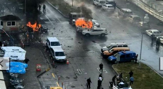 İzmir’de yaşanan patlamada biri polis diğeri adliye çalışanı şehit olurken, 7 vatandaş yaralandı. Çıkan çayışmada 2 terörist ise etkisiz hale getirildi. Çatışmada bulunan üçüncü teröristin ise aranmasına devam ediliyor. Operasyonu zmir Emniyet Müdürü Hüseyin Aşkın yönetiyor.