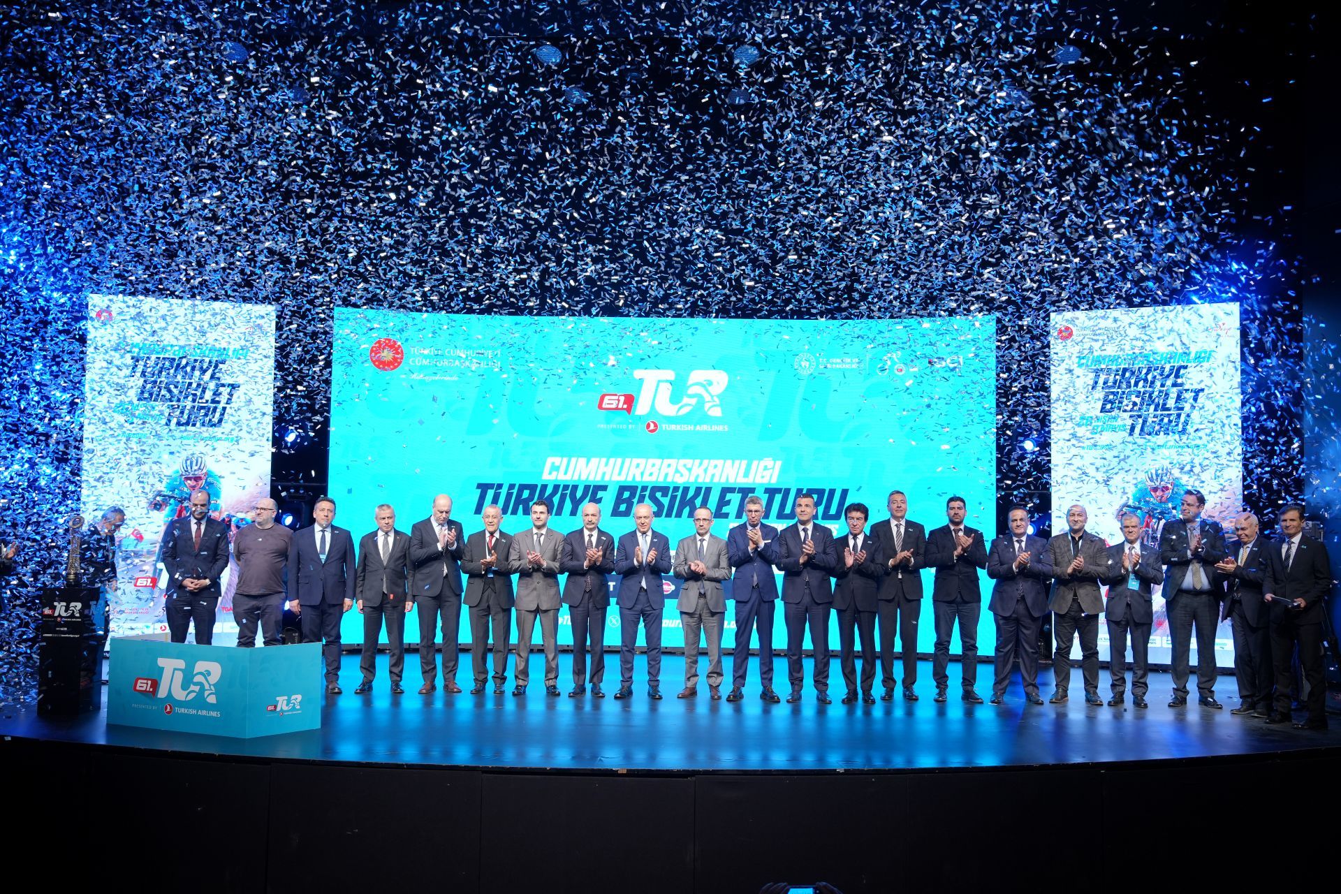 Türkiye Bisiklet Federasyonu Başkanı Emin Müftüoğlu ev sahipliğinde düzenlenen 61. Cumhurbaşkanlığı Türkiye Bisiklet Turu’nun basın toplantısı: Cumhurbaşkanlığı Güvenlik İşleri Genel Müdürü Hasan Yıldırım, İstanbul Vali Yardımcısı Ünal Kılıçarslan, Beyoğlu Kaymakamı Abdullah Atakan Atasoy, Türkiye Milli Olimpiyat Komitesi Başkanı ve T.C. Gençlik ve Spor Bakanlığı Spor Hizmetleri Genel Müdürü Prof.Dr. Veli Ozan Çakır, İstanbul Gençlik ve Spor İl Müdürü Muhittin Özbay ile birlikte Türkiye Bisiklet Federasyonu Yönetim Kurulu Başkan Vekili Fikret Hayali, Asbaşkan Metin Cengiz, Federasyon Yönetim Kurulu Üyeleri ve Genel Sekreter Mehmet Sedat Fırat’ın yanı sıra, destek veren kurum ve kuruluşların temsilcileri, Kültür ve Turizm Bakanlığı Türkiye Turizm Tanıtım ve Geliştirme Ajansı Spor Pazarlama Müdürü Serhan Sarı, Türk Hava Yolları Sponsorluk Müdürü Yunus Özleyen, Türk Telekom Sponsorluk Yönetimi Müdürü Sinem Özmen sponsor markaların temsilcileri, çok sayıda medya mensubu ve bisiklet ailesinin katılımıyla gerçekleşti.