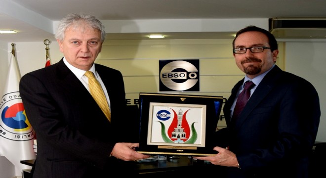 EBSO Başkanı Yorgancılar, ziyaret anısına ABD Büyükelçesi Bass’a plaket verdi.
