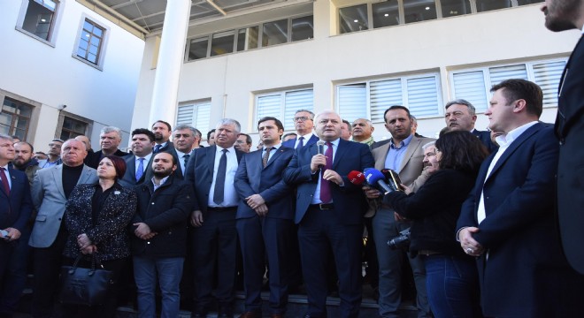 Özkan, partililer adına okuduğu basın açıklamasında, "Mevlana'ya sormuşlar, 'Adaletsizlik nedir?' diye. 'Hak edeni hak ettiği yerden alıp, hak etmediği yere koymaktır' demiş. Bir adaletsizlikle karşı karşıyayız. Bunu en kısa sürede sonlandırmak için gereken her türlü çalışmayı yapacağız. Buradan yola çıkarak, Urla Belediyemize karşı geliştirilecek her türlü sabotaja, her türlü politik harekete karşı çelik bir duvar gibi burada durmaya devam edeceğiz. Bizim için geçerli olan şey haktır, hukuktur, adalettir. Masumiyetin çiğnenmesine asla izin vermeyeceğiz. Biz sizin başınızı asla öne eğdirmedik, bundan sonra da eğdirmeyeceğiz. Bundan sonraki süreci de en yakından takip edeceğiz. Şunu aklından kimse geçirmesin, Urla Belediyesi'ni başka belediyelerle kimse karıştırmasın. Burası İzmir ve İzmir Mustafa Kemal'in kalesi olarak kalmaya devam edecektir. Bizim toprağımızda ayrık otu bitmez, biz ayrık otunun yaşamasına izin vermeyiz. Bizim toprağımızda Fetullahçı falan yaşamaz. Burası Urla, burası İzmir. Biz buradayız, her türlü sorunu halledecek güçte ve yeterlilikteyiz. Dayanışacağız, el ele ve kol kola olacağız. Urla olarak bu basiretsizliği ortadan kaldıracağız. Arkadaşımızın tutuksuz, adil ve hızlı yargılanmasını talep ediyoruz. Arkadaşımız koltuğuna oturana kadar mücadeleye devam edeceğiz" şeklinde tepkisini dile getirdi.