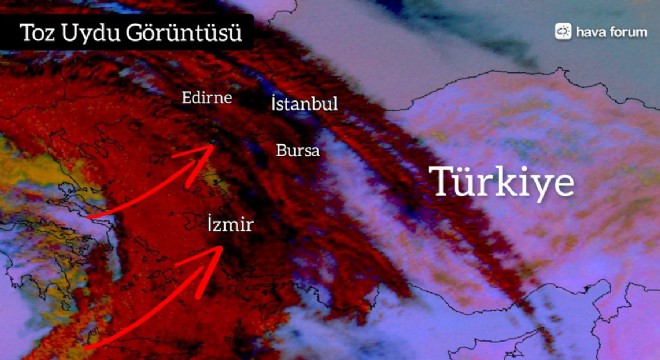 Afrika tozları Türkiye’ye ulaştı. 1. toz dalgası bu akşam ve Salı günü batı bölgelerde havayı da kapatacak, bulutlanma artacak. 2. toz dalgası ve daha etkilisi Perşembe ve Cuma günleri bekleniyor.”