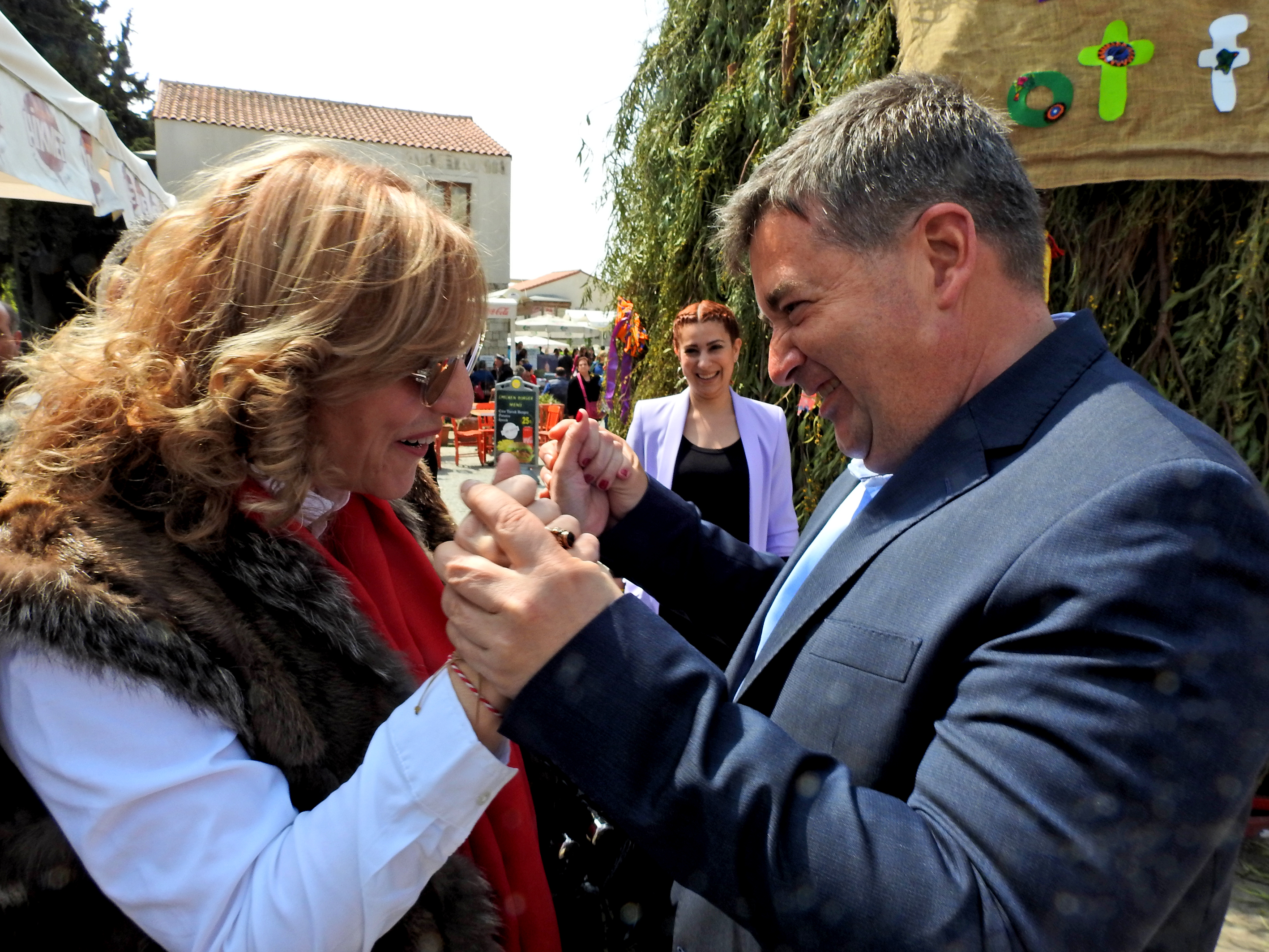 Alaçatı Ot Festivali için Yunanistan'ın Sakız Adası'ndan gelen Sakız Belediyesi Turizm Sorumlusu Rena Pagoudi Damigou, Çeşme Belediye Başkanı seçilen Ekrem Oran'ı kutlayarak başarılar dilerken, Oran da Damigou'yu Çeşme'de görmekten duyduğu memnuniyetini ifade etti.