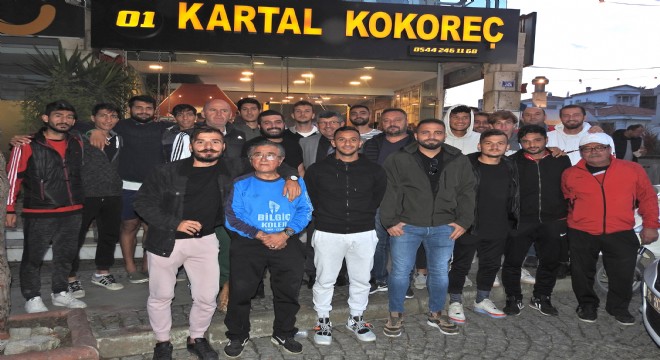 Son altı haftada aldığı puanlarla lig sıralamasındaki tırmanışını sürdüren ve 14 puanla 4. sıraya yükselen Alaçatıspor'a, Cumartesi günü kendi sahasında Özçamdibispor ile yapacağı karşılaşma öncesinde, 01 Kartal Kokoreç işletmesi moral yemeği verdi.