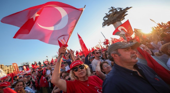 Cumhuriyet Halk Partisi’nin tutuklu bulunan İstanbul Büyükşehir Belediye Başkanı ve partinin Cumhurbaşkanı adayı Ekrem İmamoğlu’na destek olmak amacıyla ülke genelinde başlattığı ‘Millet İradesine Sahip Çıkıyor’ mitinglerinin sonuncusu İzmir Gündoğdu Meydanı’na gerçekleşti. Yüzbinlerce yurttaşın katıldığı miting polemik konusu oldu.
