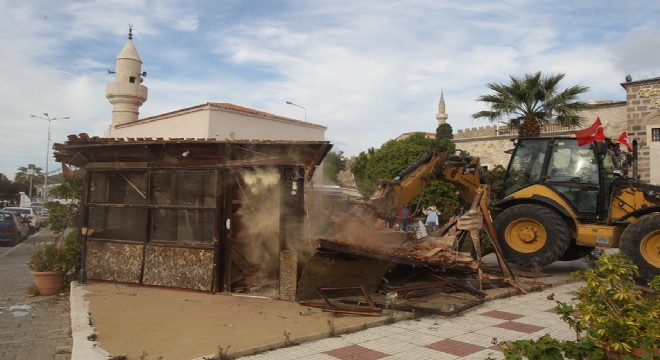 Mahkeme sürecinde ‘Yürütmeyi Durdurma Kararı’nı iptal ettiren Çeşme Belediyesi ekipleri sabah saat 09.00’da gerçekleştirdikleri sözlü boşaltma kararının ardından saat 14.00’de kepçe ile yıkımı gerçekleştirdiler.
