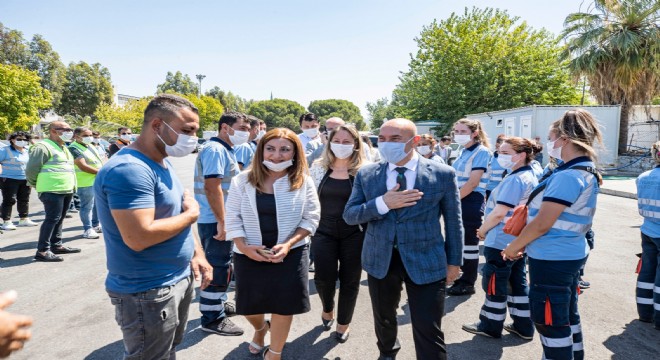 Ardından İzmir Büyükşehir Belediyesi’nin Halkapınar’da bulunan ek hizmet binasına gelen Başkan Soyer, burada da tek tek bütün personelle bayramlaştıktan sonra Halkapınar Atık Transfer İstasyonu’ndaki işçilerle bir araya geldi. Soyer’i burada İzmir Büyükşehir Belediyesi Genel Sekreter Yardımcısı Yıldız Devran ve işçiler karşıladı. Başkan Soyer, İzmir Büyükşehir Belediyesi’nin büyük bir kurum olduğunu, o nedenle bir araya gelmenin her zaman mümkün olmadığını belirterek, “Yoksa gönül istiyor ki, oturalım konuşalım. Birbirimizi duyup dinleyelim. Birbirimizin derdine, sevincine ortak olalım ama yetişemiyoruz. Fakat bilin ki kalbimiz sizinle” dedi. İzmir gibi bir şehri birlikte yönetiyor olmanın, İzmir gibi bir şehre birlikte hizmet ediyor olmanın gururunu yaşadıklarını kaydeden Başkan Soyer, şunları söyledi: “Emeklerinizden dolayı hepinizi tebrik ed iyorum. İzmir'i çok daha huzurlu yaşanan, çok daha keyifli yaşanan bir kent haline getireceğiz."