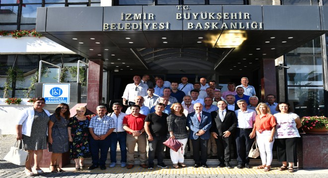 Urla Belediye Başkanı Burak Oğuz ve Urla muhtarları, İzmir Büyükşehir Belediye Başkanı Tunç Soyer'i ziyaret etti. Çetin Emeç Toplantı Salonu'nda gerçekleşen buluşmada Urla'nın 36 mahalle muhtarı, İzmir Büyükşehir Belediyesi Genel Sekreteri Dr. Buğra Gökçe ve Basın-Yayın Halkla İlişkiler Dairesi Başkanı İlker Kozan da yer aldı. 36 mahalle muhtarını ağırlayan Başkan Tunç Soyer, "Biz sizden gelen talepleri yerine getirmeye hazırız. Çok uzun bir yolumuz var bu en az 5 yıl sürecek. Çok şeffaf ve açık olacağız. Yapamadığımız şeyleri neden yapamadığımızı anlatacağız. Bu yolda beraber yol arkadaşlığı yapacağız" şeklinde konuştu.&n bsp; Başkan Tunç Soyer, "İzmir Büyükşehir Belediyesi ve İzmir'in muhtarlarının çok yakın ilişkide olmaları şart. Tam bir gönül birliği, işbirliği içinde olmaları lazım, Urla konusunda Genel Sekreterimiz Buğra Gökçe son derece deneyimli ve işine vakıf. Urla'da da Burak kardeşim olduğu için gözüm arkada değil. Sizlerle arasının iyi olması beni ayrıca mutlu etti" dedi.
