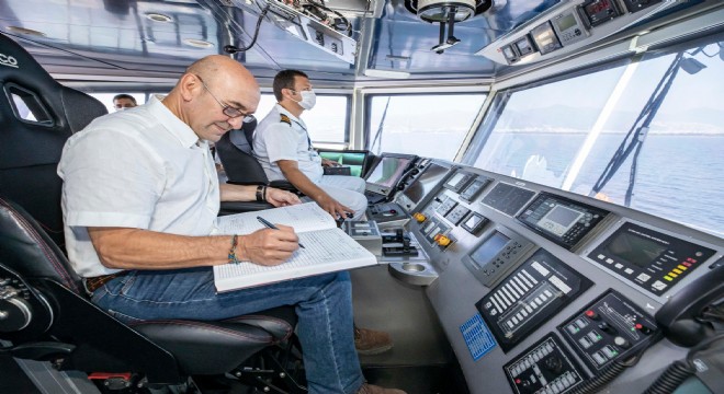 İzmir Büyükşehir Belediye Başkanı Tunç Soyer de Konak İskelesi'nden kalkan Mordoğan-Foça gemisine Güzelbahçe'ye kadar binerek tatilcilerle birlikte keyifli bir yolculuk yaptı.