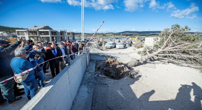 Hortumun vurduğu Alaçatı’da incelemelerde bulunan Başkan Tunç Soyer, “İzmir felaketlerle boğuşmaya devam ediyor. Belediye olarak ihtiyaç duyan tüm yurttaşlarımızın yanında olacağız” dedi.