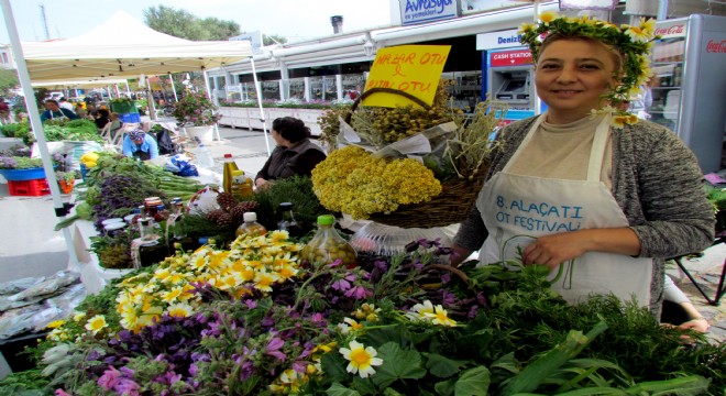 9 Nisan tarihine kadar sürecek Alaçatı Ot Festivali'nin ilk gününde, Çeşme'nin endemik bitkilerin, otlardan yapılan çeşitli yiyeceklerin ve hediyelik eşyaların yer aldığı çok sayıda stant açıldı.