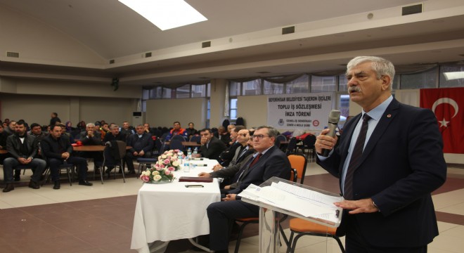 Belediyenin kültür merkezinde gerçekleşen törene farklı birimlerde çalışan 300 taşeron işçinin tamamına yakını, DİSK Genel Başkanı Kani Beko, Genel İş Genel Başkanı Remzi Çalışkan, Genel İş merkez ve şube yöneticileri ve Seferihisar Belediye Başkanı Tunç Soyer katıldı.