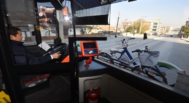İzmir Büyükşehir Belediyesi, metro ve İZBAN trenlerinde bisikletli yolculukların önünü açan düzenlemelerin ardından, bu alanda önemli bir adım daha attı. ESHOT Genel Müdürlüğü, hem bisiklet kullanımını yaygınlaştırarak çevreci ulaşımı desteklemek hem de bisiklet kullanıcılarından gelen talepleri karşılamak üzerine otobüslerin önüne taşıma aparatı taktı. Aynı anda iki bisikletin taşınabildiği sistem, üzerinde bisiklet yokken otobüsün ön kısmında kapalı durumda kalabiliyor. Bisikletli bir yolcu bineceğinde ise yolcu tarafından pratik bir şekilde açılıyor. Kullanıcı, bisikleti taşıma bölgesine yerleştirdikten sonra yolculuğuna başlayabiliyor. Yolculuğun bitiminde ise bisikleti yerin den çıkararak, düzeneği kapalı konuma getirmek gerekiyor. Tüm bu işlemler çok kısa bir süre içinde, pratik bir şekilde yapılabiliyor. Aparat sisteminin nasıl işlediği, otobüslerin ön camına yapıştırılan bilgilendirme notlarında da görsel ve yazılı olarak yer alıyor.
