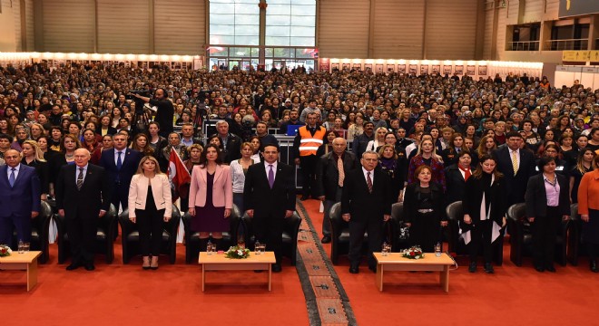 İzmir'in Türkiye’nin en aydınlık kenti, ülkenin batıya açılan penceresi olduğunu ifade eden Büyükşehir Belediye Başkanı Aziz Kocaoğlu, nereden ve hangi bölgeden gelirse gelsin, kentin aydınlığının o insanları da aydınlattığını söyledi. İzmir'de insanlar arasında ayrımcılık yapılmadığını; hangi bölgeden, hangi etnik kökenden, hangi gruptan olursa olsun İzmir’de kendini bulduğunu dile getiren Başkan Kocaoğlu, “Bu kentte ayrımcılık yok, dayanışma var; şans var, eşitlik var. İzmirli kadınlar sosyal yaşamın içinde kah eşinden önce, kah eşinin yanında yer alıyor. Yaşam biçimine müdahale edilmesini istemiyor. İşte bu onurlu, kişilikli İzmir kadını sayesinde, ‘kadın dostu kent’ olduk” dedi.