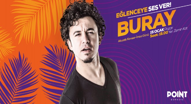 15 Ocak Pazar günü saat 15.00’da gerçekleşecek olan akustik konser ve imza günü etkinliğinde, Buray sevilen şarkılarını İzmirliler için seslendirecek. Düzenlenen etkinlikte İzmirliler, yakışıklı sanatçıyı yakından görme ve kendisiyle bol bol fotoğraf çektirme şansına sahip olacak. Point Bornova AVM, hafta sonuna Buray ile renk katmak isteyen tüm ziyaretçileri bekliyor.