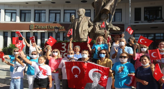 Çeşme Kadın Dayanışma Derneği, 30 Ağustos Zafer Bayramı'nın 99'uncu yıldönümü nedeniyle bir yazılı mesaj yayımladı. Dernek üyeleri tören öncesi vatandaşlara Türk Bayrağı dağıttı.