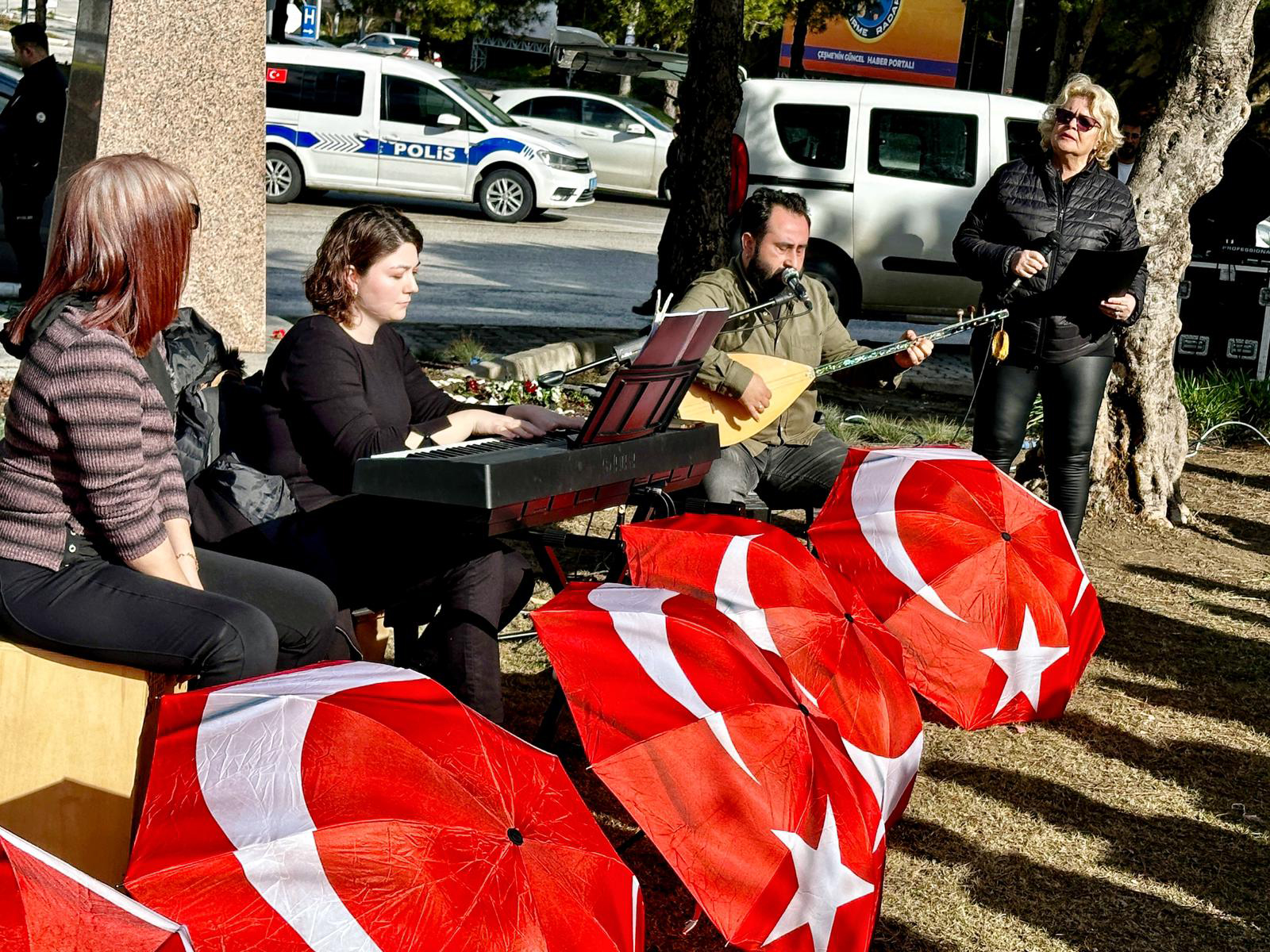 Çeşme'de Uğur Mumcu Parkı’ndaki tören, saygı duruşu ve İstiklal Marşı ile başladı. Narin Nişlioğlu’nun sunumunu üstlendiği programa; dernek üyelerinin yanı sıra STK temsilcikeri ve çok sayıda vatandaş katıldı. Törende, başta Gazi Mustafa Kemal Atatürk olmak üzere Uğur Mumcu, Ali Gaffar Okkan, İsmail Cem ve tüm demokrasi şehitleri saygıyla anıldı.