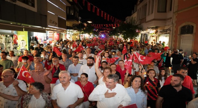 Cumhuriyet Meydanı’nda Atatürk Anıtı’na konulan çelenk sunma törenleriyle başlayan kutlamalar Fener Alayı ile zirveye çıktı. Çeşmeliler gerçekleştirilen Fener Alayı ile 30 Ağustos Zafer Bayramı’nı büyük bir coşkuyla kutlarken, Ulu Önderimiz Gazi Mustafa Kemal Atatürk ve Cumhuriyetimizin ölümsüz koruyucularını andı. Fener Alayı’nda zafer şarkıları hep bir ağızdan söylenirken, bazı vatandaşlar büyük coşkuya evlerinin balkonlarından ortak oldu. Ellerinde bayraklarla Mehmetçik Parkı önünden Cumhuriyet Meydanı’na kadar Zafer Yürüyüşü gerçekleştiren binlerce vatandaş, 101 yıl önce yakılan bağımsızlık meşalesinin hiçbir zaman sönmeyeceğini yedi düvele haykırdı.