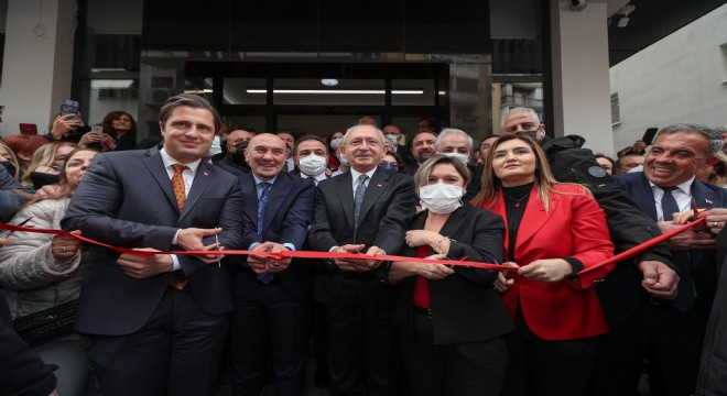 Kent içindeki ziyaretlerinin ilk durağında Alsancak'ta bulunan yeni CHP İl Binası'na gelen CHP Lideri, düzenlenen merasim ile açılış kurdelesini kesti.