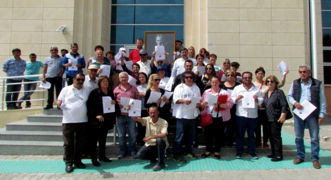 Ellerinde bir Atatürk portresi ile Çeşme Adliyesi önüne gelen CHP İlçe Başkanı Ekrem Oran, Belediye Meclis Üyeleri, Yönetim Kurulu Üyeleri, partililer ve vatandaşlar, Adliye merdivenlerinde ve duvarlarında şikayet dilekçelerini doldurdular.