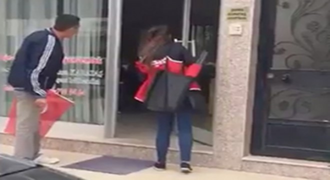 Çeşme'ye plakası kapatılmış bir araçla, "Evet" çalışması yapmak için gelen bir grubun, sokak aralarında broşür dağıtırken, "Evet" broşürlerini almak istemeyenleri "Tayyip reise" bildirecekleri, maliyeye şikayet edecekleri yönünde şikayetler alan CHP İlçe Başkanı Ekrem Oran, olay yerine giderek şahısları görüntülemeye başladı.