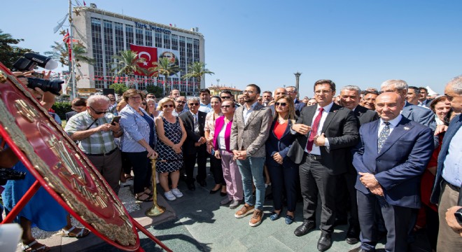 İzmir Büyükşehir Belediye Başkanı Tunç Soyer Cumhuriyet Halk Partisi (CHP) İzmir İl Başkanlığı tarafından organize edilen çelenk törenine katıldı. Cumhuriyet Meydanı’ndaki törende CHP’nin kuruluşunun 99. yılı ile İzmir'in kurtuluşunun 100. yıldönümü kutlandı. CHP İzmir İl Başkanı Deniz Yücel, Kadın Kolları İl Sekreteri Tünay Kantekin ve Gençlik Kolları İl Başkanı Burak Kotan ile Atatürk Anıtı’na çelenk bıraktı. Törene CHP Parti Meclisi (PM) Üyesi Rıfat Nalbantoğlu, İzmir milletvekilleri, ilçe belediye başkanları, il başkan yardımcıları, il ve ilçe yöneticileri ile örgüt mensupları yer aldı.