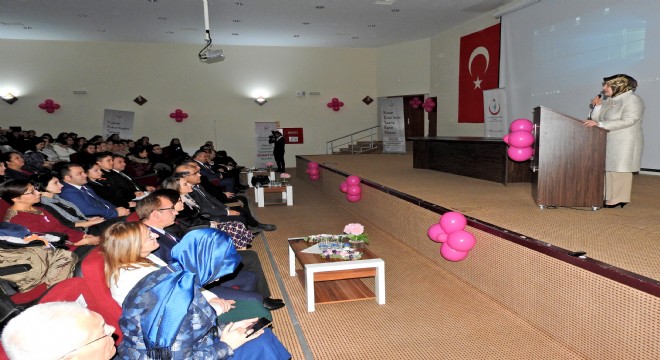 İzmir Valisi'nin eşi Uzman Dr. Dilek Didem Ayyıldız da yaptığı konuşmada, "Her 3 dakikada bir meme kanserinden dünyada bir kadını kaybediyoruz. Her 8 kadından bir tanesi meme kanseri riski altında. Biz ne kadar mücadele edersek edelim, kanser yayılmaya devam ediyor. Onun için biz kanser taramalarını mobilleştirip halkımızın ayağına giderken, ne kadar ölümcül olduğunu göz önünde tutarak, 9 yıl önce bu çalışmalara başladık. O zaman meme kanseri, 9 kadından birisinde vardı. 9 yıl önce 8 dakikada bir kadın ölüyordu. Meme kanseri taramalarında tek dezavantajımız, mahremiyet içermesi ve kadınımızın pembe bahanelerin arkasına saklanıp, şikayetinin olmasını beklemesi. Kendi bilinçaltına atarak, geciktirmesi. Bu noktada, pembe bahanelerin ne kadar anlamsız olduğunu, bunun çok kolay bir işlem olduğunu, devletimizin tamamen ücretsiz bir hizmeti olduğunu, aslında çok yavaş ilerleyen bir kanser olduğunu anlatmamız gerekiyor. Kadınımız 40 yaşından sonra bir tarama yaptırsa, onda oluşacak kanser, 5 - 10 yılı bulabiliyor. Erken tarama yaşam demekse, geç evreli meme kanseri, ölüm demek" diye anlattı.