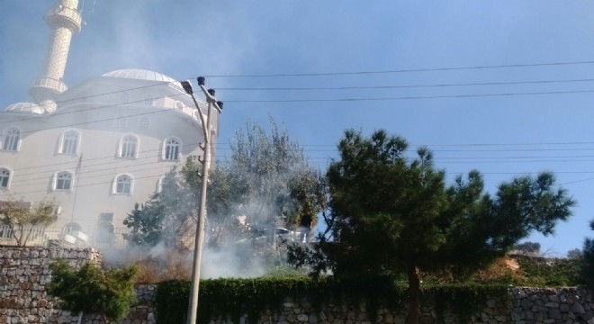 Dalyan yolu üzerindeki Yeni Cami'nin önünde çıkan yangın, camiye sıçramadan söndürüldü.