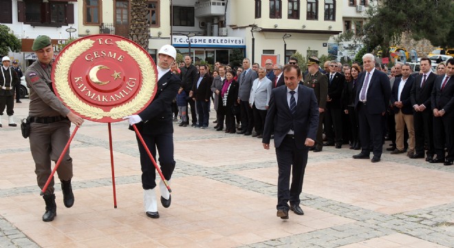 18 Mart Çanakkale Zaferi ve Şehitleri Anma Günü töreni, Çeşme Cumhuriyet Meydanı'nda saygı duruşu ve İstiklal Marşı'nın okunması ile başladı.