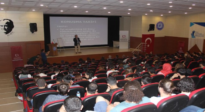 Seminerde öğrencilere ve basın mensuplarına etkili iletişim ve diksiyon hakkında bilgiler veren TRT İzmir Radyosu Spikeri Murat Can Canbay, “Kendinizi önemseyin adınızı söylerken Üstüne basa basa söyleyin. İletişime geçtiğinizde tebessüm gönderin. Sadece gülümsemek bile çok kapı açıyor” dedi.