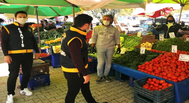Çeşme Emniyet Müdürlüğü ekipleri Koronavirüs Pandemisine karşı Pazar denetimlerini sürdürüyor.