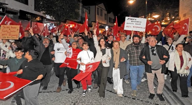 Yürüyüşe katılan Çeşmeliler, demokrasi ve adalet taleplerini dövizlerle, sloganlarla dile getirerek “Cumhurbaşkanı Ekrem İmamoğlu” dedi.
