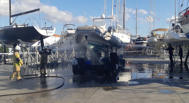Kış aylarında teknelerin bakım ve onarım işleri için yoğun olarak kullanılan çekek sahasında senaryo gereği yangın çıkan bir tekneye müdahale edildi. Senaryoya göre yangın çıkan tekneye, güvenlik şeritlerinin çekilmesi ve alanın elektriklerinin kesilmesi ile birlikte marina ekibi yangın hortumlarıyla ilk müdahaleyi yaptı.