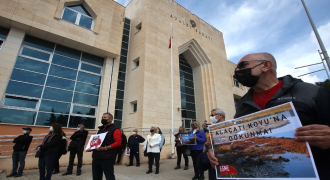 Çeşme Adliyesi önünde gerçekleştirilen basın açıklamasında konuşan TKP Çeşme İlçe Örgütü Temsilcisi Serhat Gökdoğan, Çeşme Belediyesi iştiraki olan Alataş Alaçatı İmar İnşaat şirketinin de suça ortak olduğunu dile getirdi.