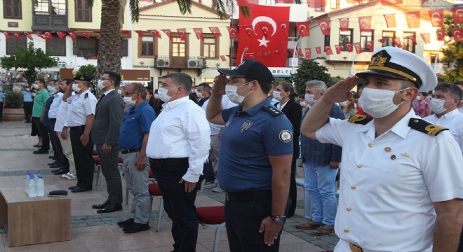 Koronavirüs tedbirleri kapsamında gerçekleştirilen anma etkinliği saat 20.00’de saygı duruşu, İstiklal Marşı’nın okunması ve Bayrakların göndere çekilmesi ile başladı.