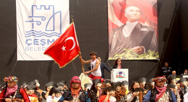 Çeşme Atatürk Anadolu Lisesi tarafından Çeşme Amfi Tiyatro'da gerçekleştirilen kutlamalar öncesinde Gençlik ve Spor İlçe Müdürlüğü ile kurum ve kuruluşların saat 09.20’da Atatürk Anıtı'na çelenk sunumu gerçekleştirdi.