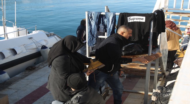 Ayakkabıları ve giyecekleri ıslanan kaçak göçmenler, Çeşme iskelesinde ıslanan ayakkabılarını ve giyeceklerini kurutmaya çalıştılar. Uluslararası Göç Örgütü temsilcileri de göçmenlere yiyecek paketleri ve içecek dağıtarak ihtiyaçlarını karşıladılar.