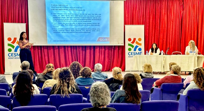 Sunumunu Tuğba Buldan’ın yaptığı etkinlikte, çocuk ihmal ve istismarının hukuki boyutları, çocuk hakları, ihbar yolları ve psikolojik etkileri ele alındı. Programa İzmir Barosu Çeşme İlçe Temsilcisi Av. Nadire Erol, Çeşme Kent Konseyi Başkanı Ahmet Güler, Kadın Meclisi Başkanı Şermin Borahan ve çok sayıda vatandaş da katıldı.