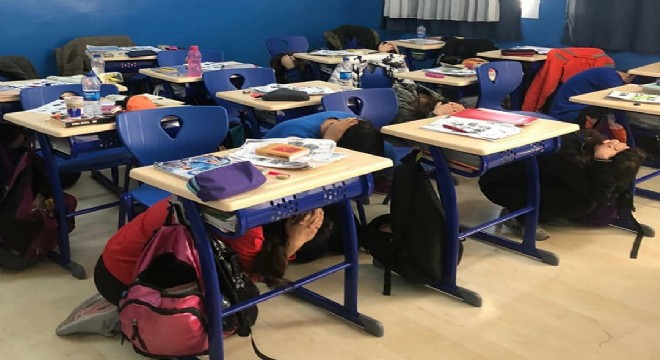 Senaryoya göre, şiddetli bir depremde sıraların yanında depremin şiddetinin geçmesini bekleyen öğrenciler, sarsıntılar azalınca kontrollü olarak sınıfların dışına çıkarak toplanma alanında buluştular.