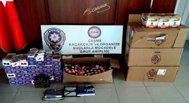 Çeşme’de K.O.M Grup Amirliği ekiplerinin gerçekleştirdiği ‘Duman-1’ operasyonunda ise farklı şahıslara ait 4 işyerinde yapılan aramalarda kayıt dışı tütün ve içkilere el konuldu.