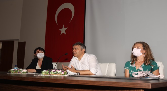Kaymakamlık Konferans Salonu’nda gerçekleştirilen toplantıya Çeşme’de bulunan kamu kurum ve kuruluş ile Sivil Toplum Kuruluşları temsilcileri katılırken, İZKA Proje sorumluları Cangül Kuş ile Özlem Değerli, katılımcıları bilgilendirdi.