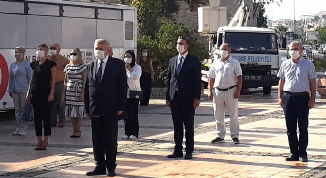 Alaçatı 15 Eylül Mustafa Çapkan İlkokulu organizasyonu ile gerçekleştirilen törene, Çeşme İlçe Milli Eğitim Müdürü Şahan Çöker ile okul öncesi ve ilkokul müdürleri katıldı.  Tören, saygı duruşu ve İstiklal Marşı'nın okunması ile son buldu.
