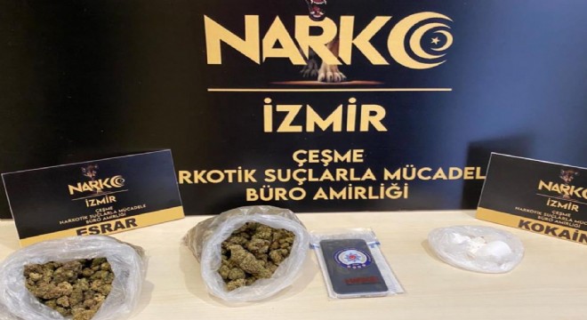 Çeşme İlçe Emniyet Müdürlüğü ile Çeşme Narkotik ekipleriinin gerçekleştirdiği çalışmalarda bir ev ve bir arabada yapılan aramalarda 95 gr Kokain, 234 gr esrar ve satışa hazır hale getirilmiş 36,97 gr esrar ele geçirildi.